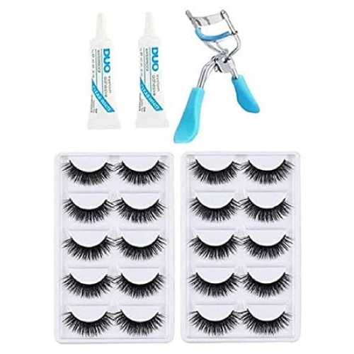 10 Pair False Eyelash, 2 Eyelash Glue + 1 Eyelash Curler(Eye Combo) Multi
