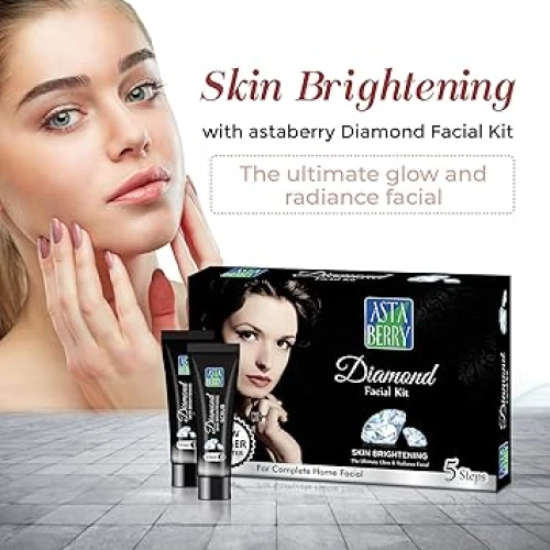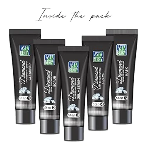 Astaberry Diamond Mini Facial Kit, 5 Steps for Skin Brightening | Ultimate Glow | Reduces blackheads & Blemishes | Restores skin nutrients & Shine | For Women |100 gm