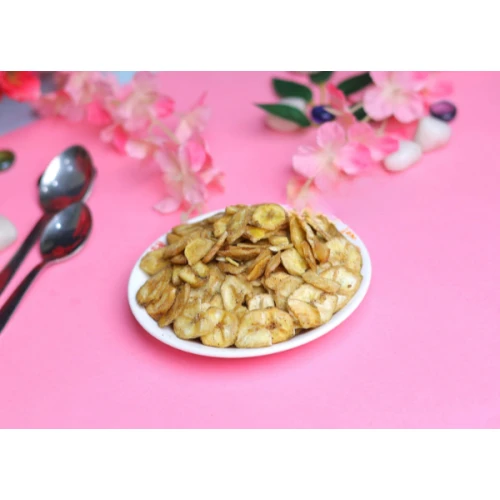Banana chips are a popular snack made from thinly sliced or dried bananas that are deep-fried until they become crispy. Banana chips can be enjoyed as a standalone snack or used as a topping in various dishes. They have a sweet and slightly savory flavor and a satisfying crunch.
