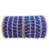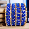 Fancy Velvet Glass Bangles Set with Golden Beads & Polka Dots for Women and Girls - Blue