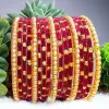 Fancy Velvet Glass Bangles Set with Golden Beads & Polka Dots for Women and Girls - Maroon