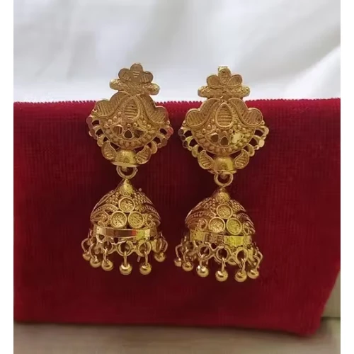 Beautiful jhumka set, gold plating ka shine impressive hai.