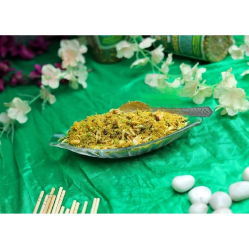 Hing dalmoth namkeen is a savory and spicy snack made with a blend of lentils, peanuts and other flavorful ingredients. It is made with whole masoor dal that is fried and mixed with some electrifying spices, healthy nuts and crunchy sev. Added to this is hing or asafoetida, giving the hing mixture namkeen a distinct and elevated taste experience.
