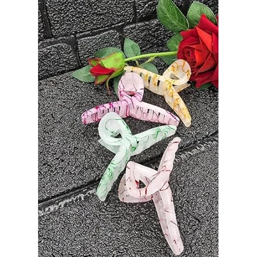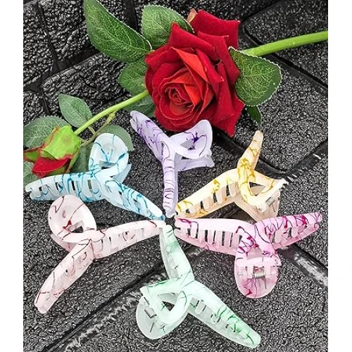 Hair claw clips Made of high quality acrylic material and safe metal spring,they are durable enough for long time and repeated use.Durable, non-slip, firm and provide comfortable support, very suitable for thick and long hair