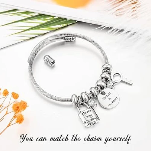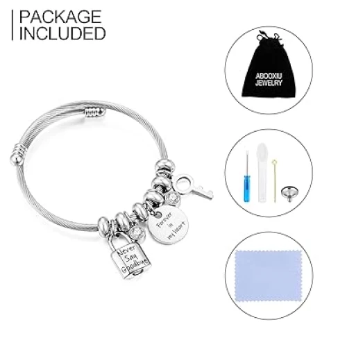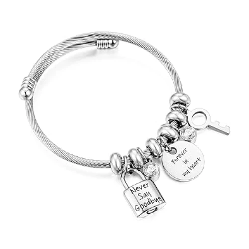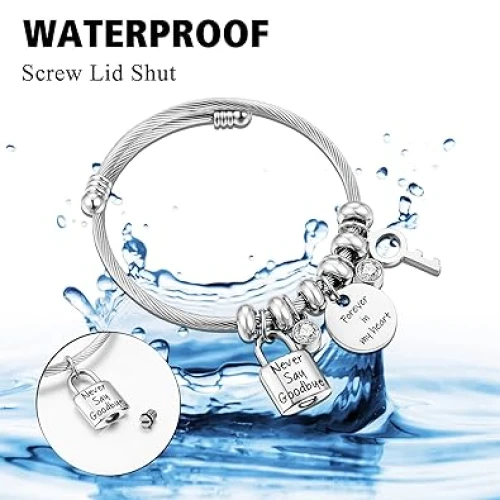 Lock Cremation Bracelet for Ashes Key Ash Bracelet Stainless Steel Urn Bracelet for Ashes for Women Memorial Ashes Holder - Never Say Goodbye&Forever in my heart, Stainless Steel, stainless steel