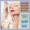 Miduoidn 1 Set French Tip Press on Nails Gradient Shimmer Extra Long Tips Removable Wraps Full Cover Ballerina Salon Manicure Kit, Type 5,24Pcs jelly, 2g glue