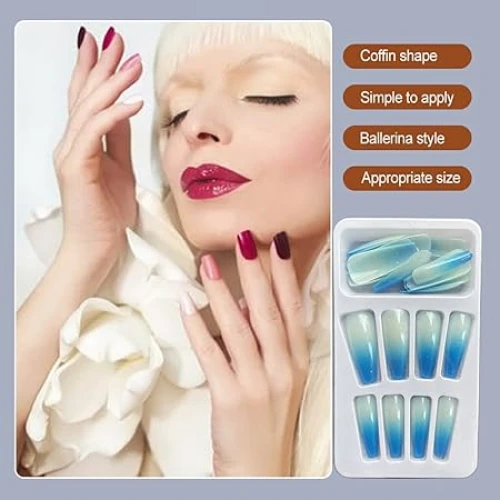 Ballerina style The extra long coffin nails, the eye-catching look can make your fingers look slender and longer, graceful gifts for your wife, girlfriend, mother or sisters, fit for parties, wedding, Halloween, Christmas, etc