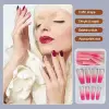 Miduoidn 1 Set French Tip Press on Nails Gradient Shimmer Extra Long Tips Removable Wraps Full Cover Ballerina Salon Manicure Kit, Type 11,24Pcs jelly, 2g glue