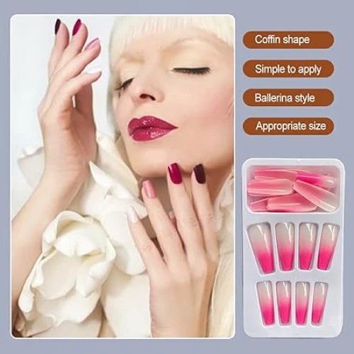 Ballerina style The extra long coffin nails, the eye-catching look can make your fingers look slender and longer, graceful gifts for your wife, girlfriend, mother or sisters, fit for parties, wedding, Halloween, Christmas, etc