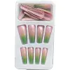 Miduoidn 1 Set French Tip Press on Nails Gradient Shimmer Extra Long Tips Removable Wraps Full Cover Ballerina Salon Manicure Kit, Type 9,24Pcs jelly, 2g glue
