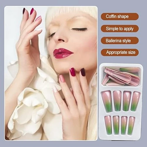 Wide applications The glitter coffin nails are designed with elegant shape and beautiful colors, suitable for experienced nail art lovers and beginners, can be applied for nail salons and personal use at home