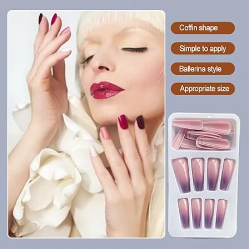 Wide applications The glitter coffin nails are designed with elegant shape and beautiful colors, suitable for experienced nail art lovers and beginners, can be applied for nail salons and personal use at home