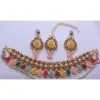 Multicolor Jewellery Set with earing and maangtika. Choker Necklace Set for Women will complement any Indian attire. Women Love Jewelry as it not only enhances their beauty, but also gives them the social confidence. Make your moment memorable with this range. This jewel set features a unique one of a kind traditional embellish with antic finish. Earrings are very easy to use being lightweight and has a design which makes it very comfortable.Superior Quality & Skin Friendly