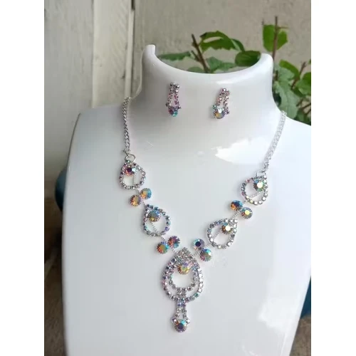 Kids girls necklace set with earrings for women and girls.its colour is silver cubic zirconia stone....