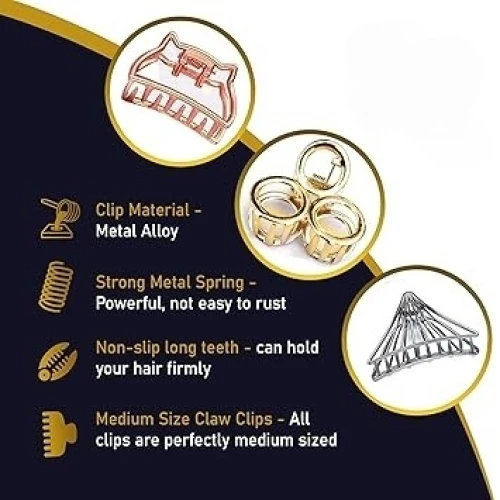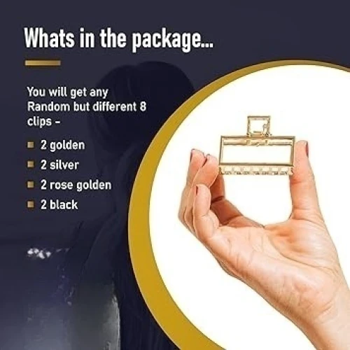 【4 COLOURS - 8 CLIPS】 8 random hair claw clips with different colours: Golden, Silver Rose Gold & Black. Our collection features the latest & stylish hair clips for women, hair clutch for women