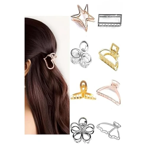 THE MARKETVILLA Hair Clips for Woman Metal - Pack of 8, Hair Clips & Clutchersfor Women, Claw Clips for Women Aesthetic Clutcher, Cute accessories for Girls, Clature for Girls (Medium Size)