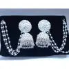 4. पार्टी वियर झुमका और मांग टीका सेट कान चेन के साथ