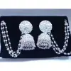 3. Designer jhumka with ear chain and maang tikka set for party wear